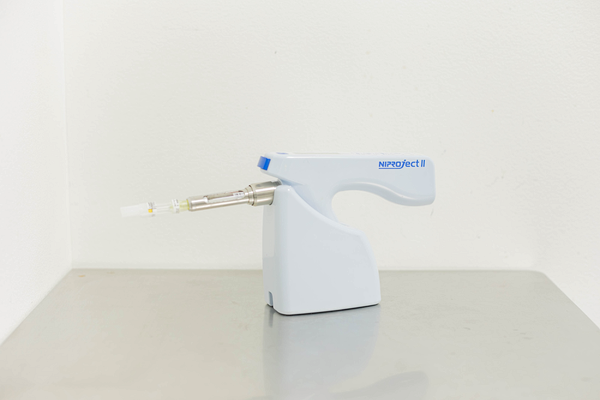 電動麻酔器を使うことで、ゆっくりと一定の圧力で注入することができるため、痛みが少なく、注入時間を短縮することができます。
